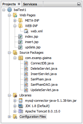 Hình ảnh toàn bộ Project của NetBeans như sau :