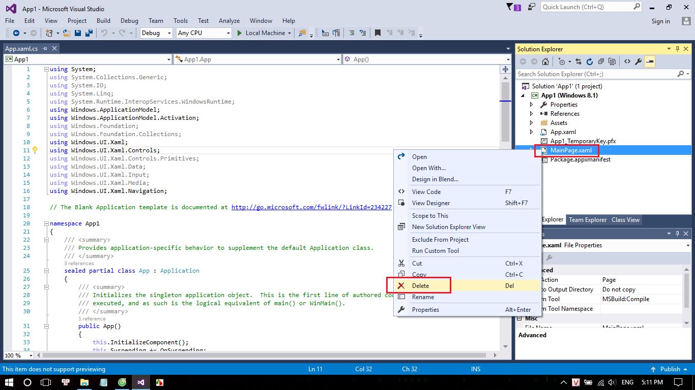 - Xóa MainPage.xaml- Tạo mới một MainPage.xaml